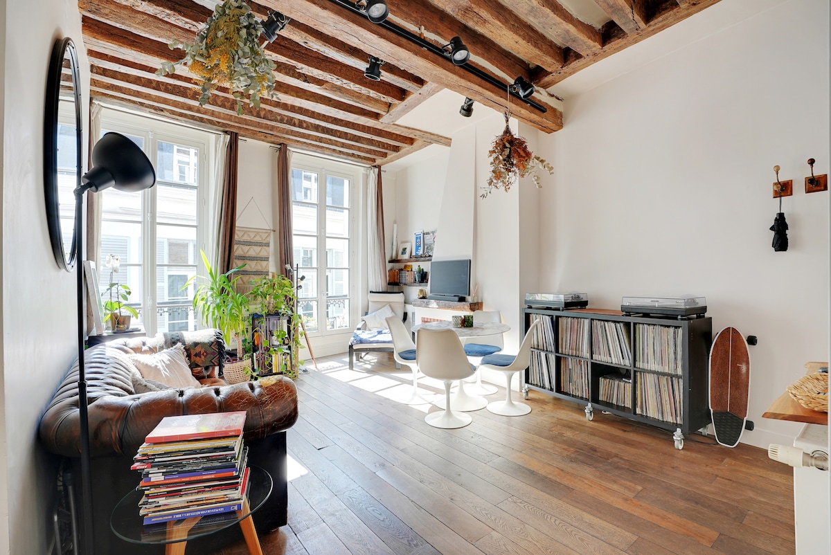 Este espacioso apartamento de 1 dormitorio se encuentra en un edificio del Barrio Latino del siglo XVII en uno de los barrios más deseables de París. A pocos pasos del río Sena, sus románticos muelles, cafés históricos, tiendas, restaurantes y monumentos, está tranquilamente separado del bullicio por dos pintorescos patios. Cerca de muchos sitios que te atrajeron a París. Sus altos techos con vigas de madera y ventanas del suelo al techo lo convierten en un lugar luminoso, espacioso y sorprendentemente tranquilo para relajarse.