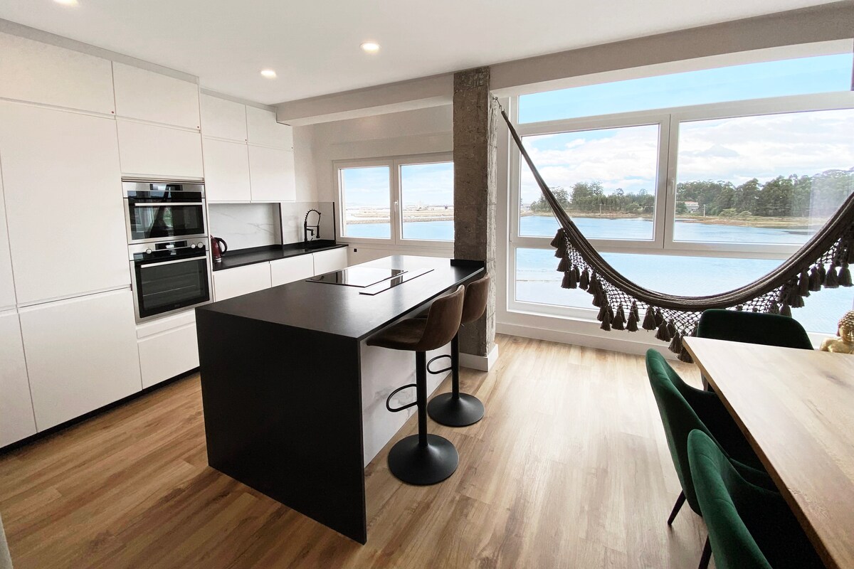 Apartamento a estrenar en Agosto 2020, en el centro de Vilanova, a 5 mn andando de la playa del Terrón, con gran terrraza sobre el mar y vista panorámica de todo el pueblo. Acogedor y con todos los servicios necesarios y contactos para realizar diversas actividades según preferencia de los alojados. Desde Vilanova es muy rápido el acceso a Illa de Arousa, Sanxenxo, Pontevedra, Santiago de Compostela, Illas Atlánticas, bodegas Albariño, ruta de la Camelia, etc...