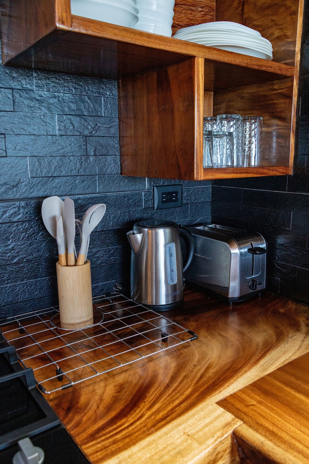 Enjoy our Amalú Black Glass Haus, nested in the forest with a 270° view of the pacific ocean and the cloud forest . Just 10 min drive to town. Enjoy the bath tub overlooking the mountains and relax in a king size adjustuble bed. You will have a private deck and hot tub just for you. Outdoor shower, indoor tub, wood fireplace and a projector for movie nights from your bed. You will also have a modern kitchen with all the essentials, modern floor heated bathroom, double rain shower.