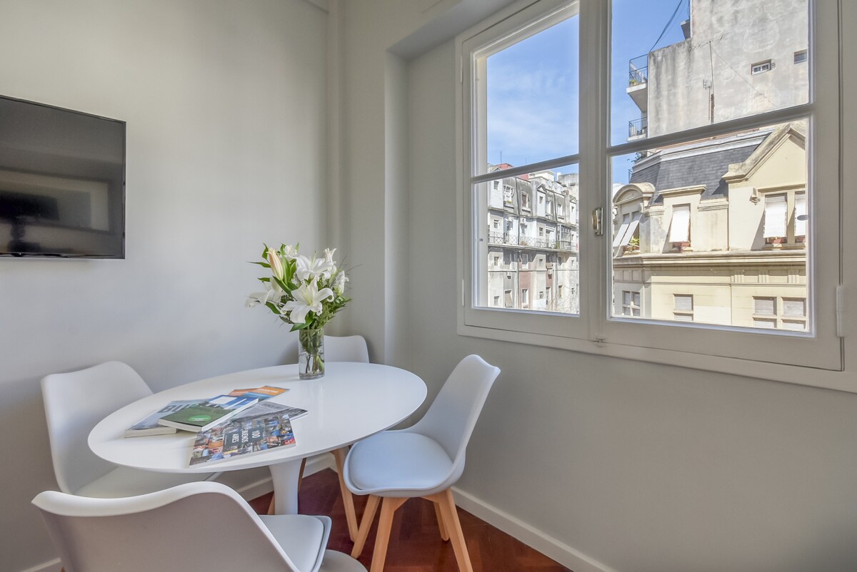 New beautiful large studio, full of light. Impeccably renovated, fully equipped with high-end comforts: everything sparkles and you will enjoy many thoughtful details to make you feel welcome. Walking distance from all the great things Recoleta has to offer: restaurants, museums, parks and nightlife. You will get to live like the locals in an authentic yet sophisticated neighborhood, safe and full of life at all times. Excellent location to move around Buenos Aires.