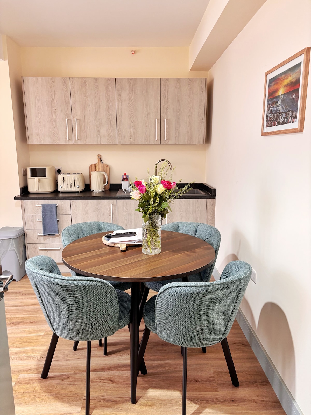 Disfruta de la escapada costera ideal en nuestro apartamento recién reformado en la planta baja. Con impresionantes vistas al mar, una cocina bien equipada, TV inteligente y wifi rápido, tendrás todo lo necesario para relajarte y desconectar. Disfruta de una cama tamaño king de lujo con vistas a un patio de piedra. A solo unos pasos de la playa y a cinco minutos a pie del centro de la ciudad y de la estación de tren. Fácil acceso a todas las tiendas, bares y restaurantes que Aberystwyth tiene para ofrecer. El escenario perfecto para una escapada idílica junto al mar.