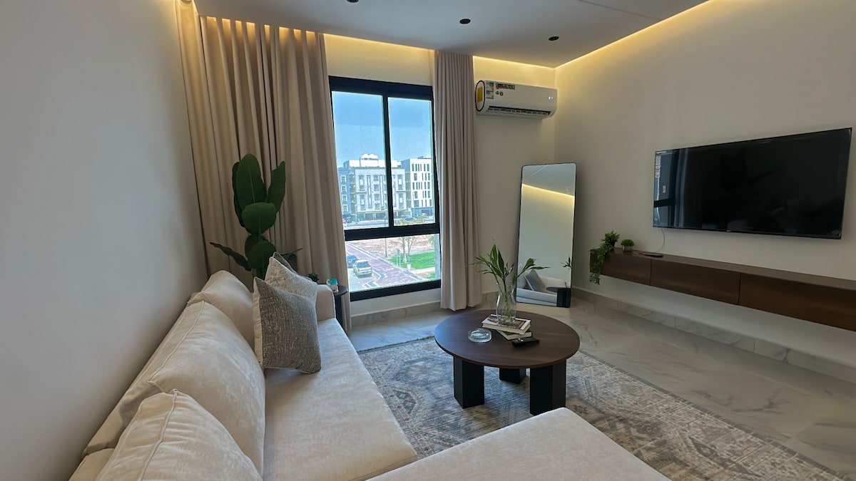 Relájate en este lugar moderno y elegante - Un departamento lounge con un salón con una sesión relajante, un dormitorio principal, una esquina de café y un baño completo. Tiene una pantalla inteligente de 70 pulgadas con suscripción a Netflix y mira VIP e IPTV para disfrutar de juegos, películas y series, así como acceso rápido a Internet gratuito. Cuenta con una ubicación cerca de todos los servicios y en los mejores vecindarios de la ciudad de Jeddah . Hayakum Allah, nuestros huéspedes en tu segundo hogar