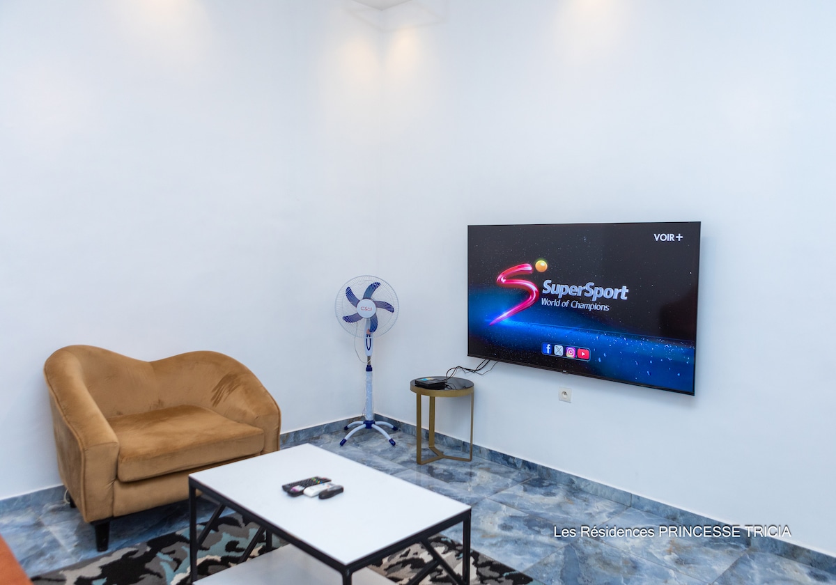 Ubicada en la nueva finca Bethel de GCITT Calavi, frente a las 20.000 nuevas viviendas sociales de la finca Ouedo (en construcción), esta villa está cerca del lago turístico de Ganvié y del zoológico de Agoualand. Esta residencia totalmente privada es ideal para vacaciones familiares, estancias grupales o escapadas con amigos. Prestaciones Piscina, jacuzzi, aire acondicionado, ventiladores de techo, wifi, canales de TV disponibles, cámaras de seguridad al aire libre. Nota: Los costos de recarga del medidor de electricidad son responsabilidad de los huéspedes.