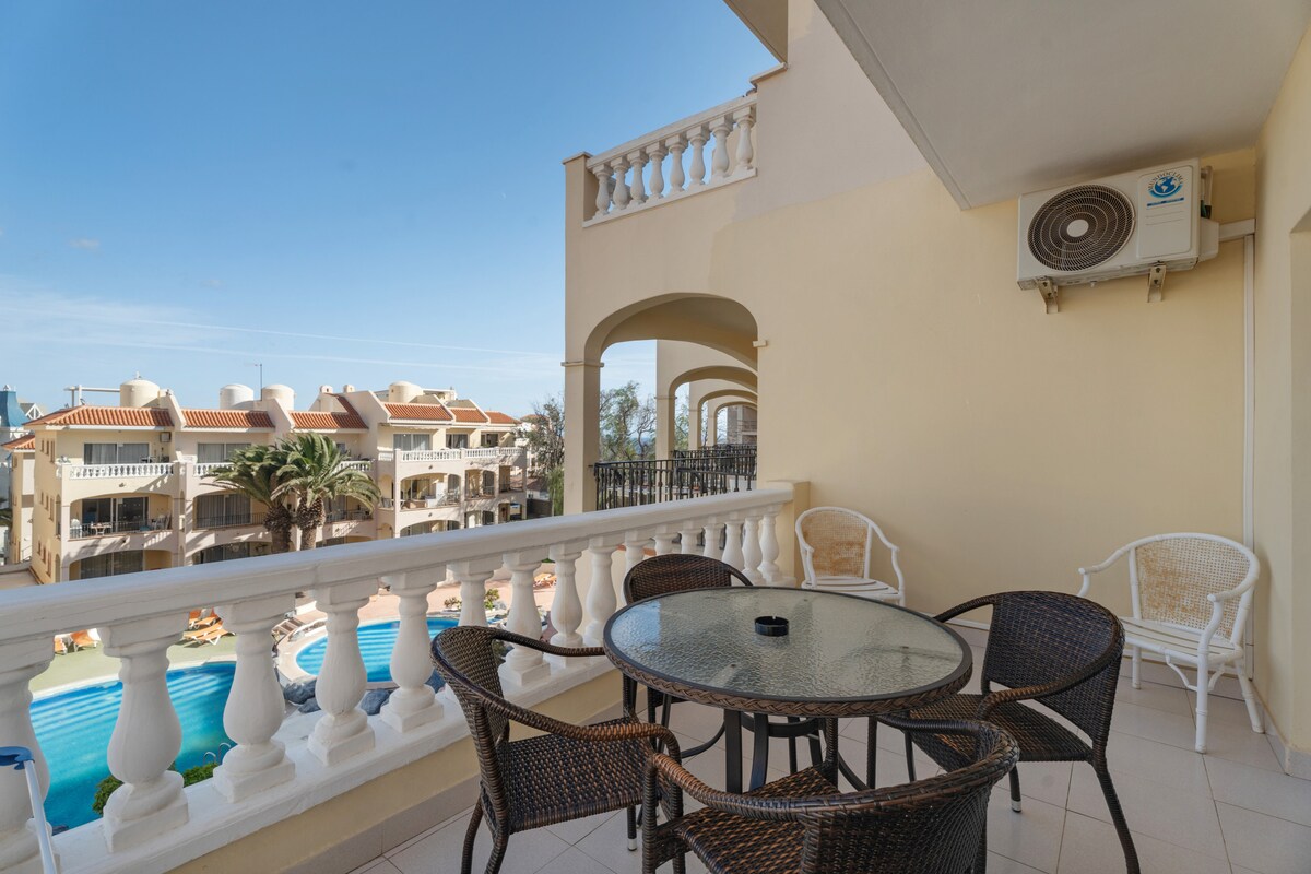 Pasa tus mejores vacaciones en nuestro departamento moderno. El apartamento consta de dormitorio con cama matrimonial y sala de estar con sofá cama. También proponemos servicio de recepción y cambio de toallas cada 3 días. Apartamento ubicado en el complejo vacacional con 2 piscinas climatizadas con magníficas vistas al mar. Aqualand está a solo 200 m del departamento.