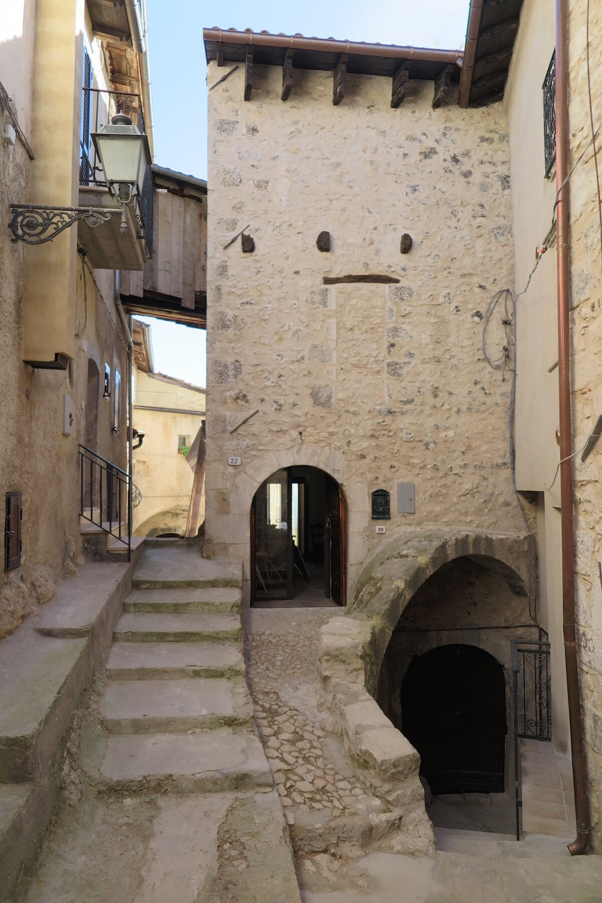 La Casa Grande fa parte di un piccolo albergo diffuso (La Torre del Cornone). Ci trovate nel centro storico del paese di Fontecchio (AQ) a solo 5 minuti a piedi dalla piazza principale del paese. Fontecchio è un paesino di impianto medievale situato nel cuore del Parco del Sirente Velino. Questa tipica casa-torre si trova nell’ angolo meridionale delle mura del paese, con una vista spettacolare sulla verdissima e silenziosa valle del fiume Aterno.