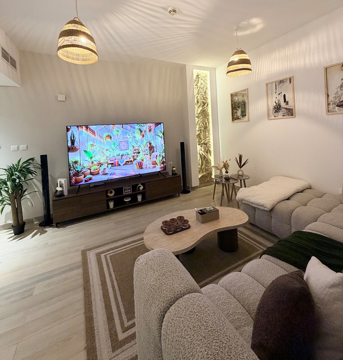 Apartamento de estilo bohemio con TV de 85 pulgadas en Yas Island