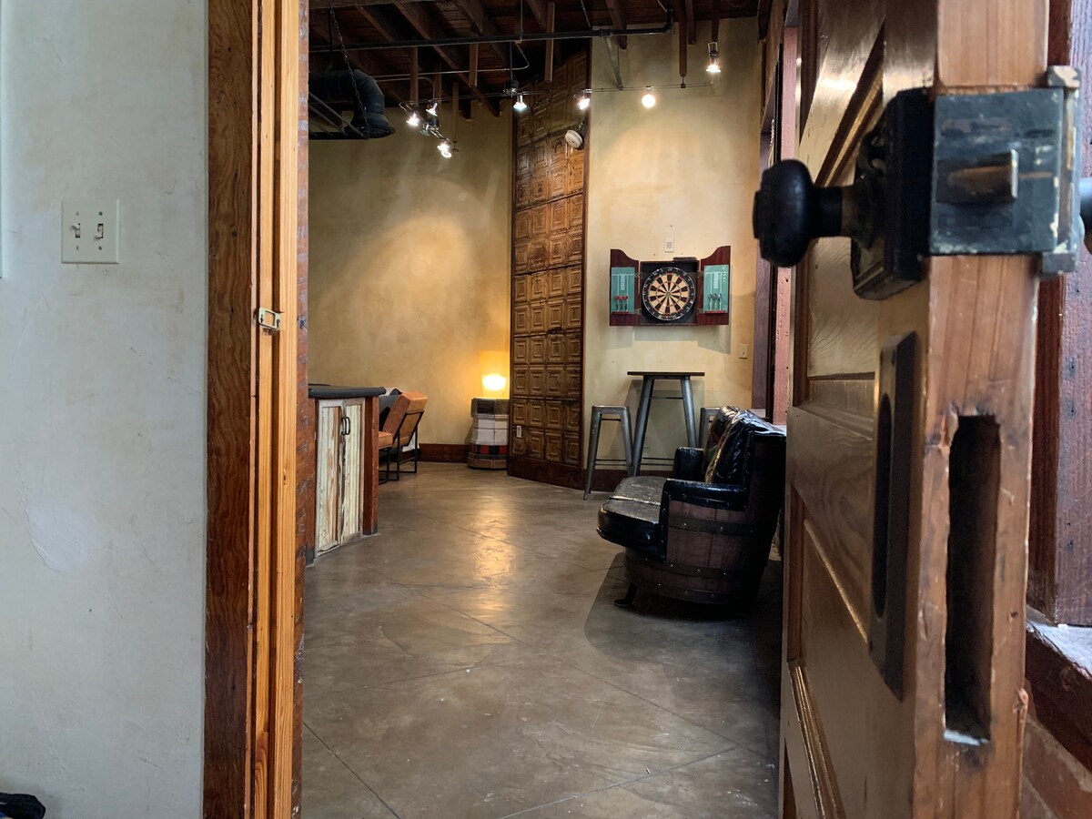 Beautiful downtown loft on 3rd Street. The spacious loft is a one-bedroom and has a massive living space that includes a 75' TV and dartboard.