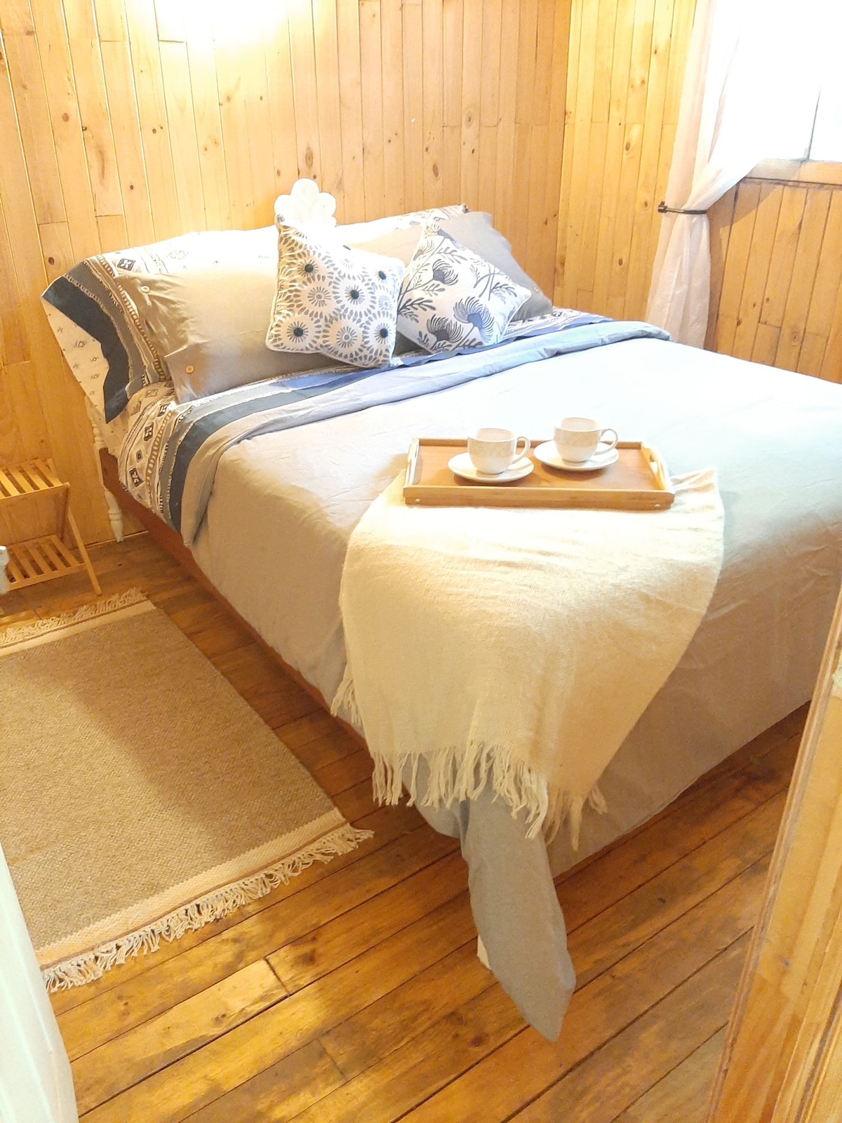 Nuestra cabaña cuenta con todas las comodidades que necesitas para una estancia cómoda, incluyendo una relajante tinaja para sumergirte y estacionamiento privado para tu conveniencia. Nos encontramos inmersos en el bosque, por lo que la tranquilidad y paz son únicos. Recomendamos vehículo doble tracción en los meses épocas de lluvia o nieve . Actualmente el camino es optimo para todo tipo de vehículo. PARA ACCEDER A LA PROPIEDAD SE REALIZA RECORRIDO POR CAMINO RURAL (TIERRA) 1,6KM