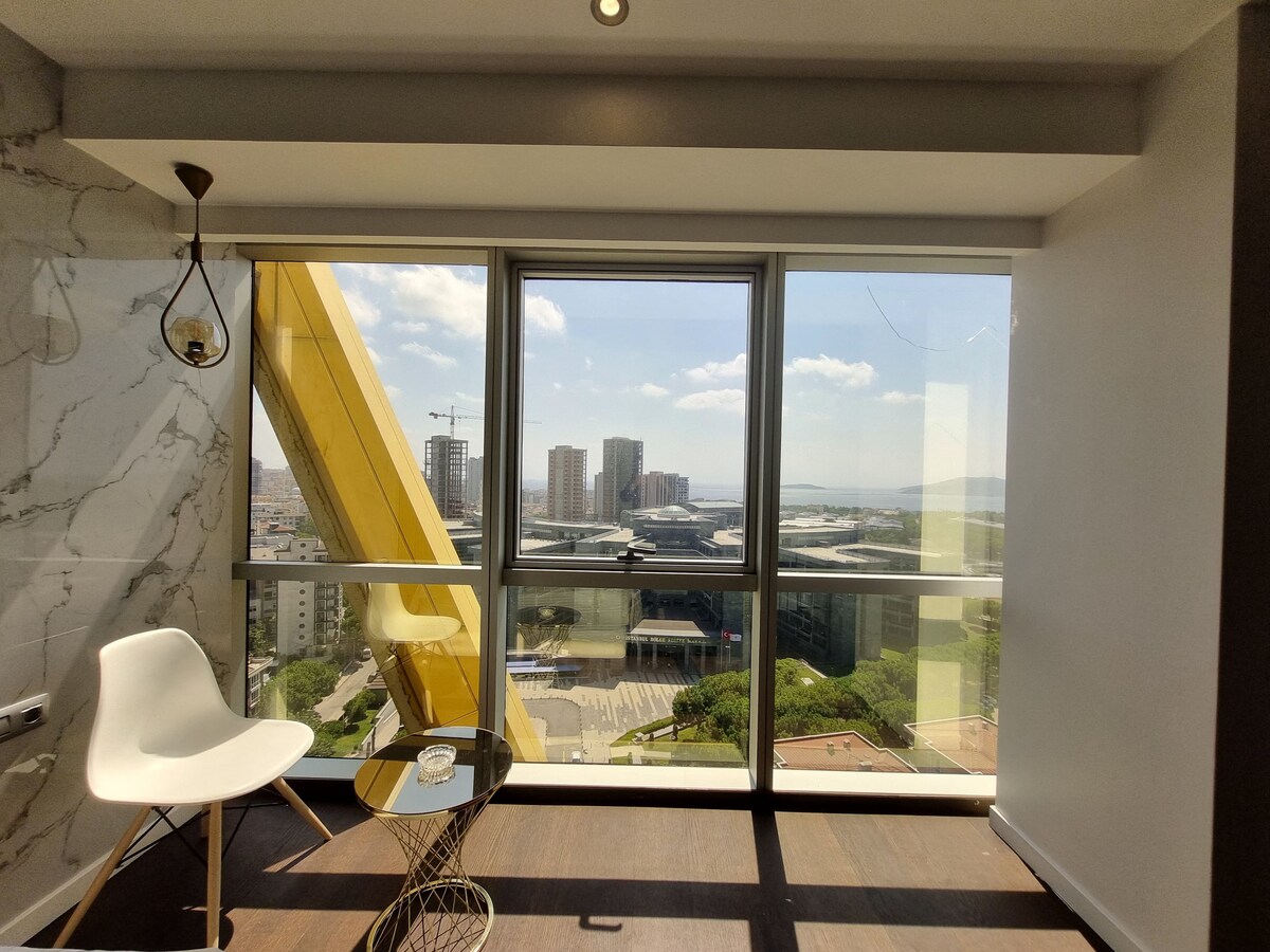 Bienvenido a nuestro apartamento totalmente equipado con vistas a las islas en el piso 16 de la prestigiosa y galardonada DAP Vazo Tower en Maltepe. La residencia, ubicada frente al Palacio de Justicia de Anatolia, a pocos pasos de Mármara, ofrece piscinas interiores y exteriores, gimnasio, estacionamiento y seguridad las 24 horas. El apartamento tiene lavadora, microondas, TV, cafetera y todos los artículos necesarios. Ubicación ideal tanto para negocios como para vacaciones