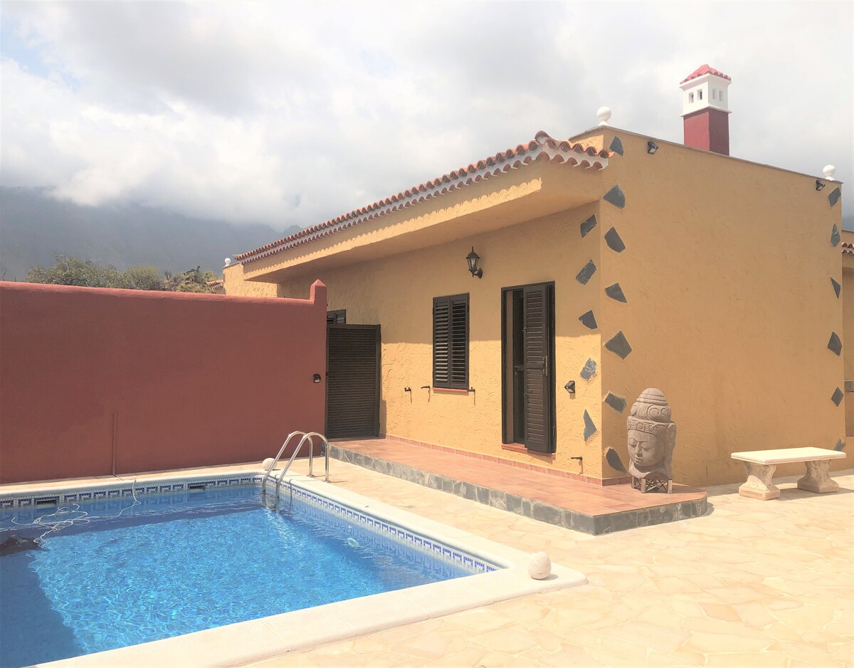 This house is inside a Banana Plantation & Little Group of Houses which Star is a "Really Heated" Pool ideal for swimming, as its size is 13 m x 5 m. On the very south of Tenerife, this banana plantation has been there for more than 100 years. Pool is shared with a few more houses. There is also a BBQ area and reading room near the shared pool. Free Mineral water + Spring water dispenser. A recent guest mentioned: "you can go and explore the banana plantation freely: its an unreal experience".