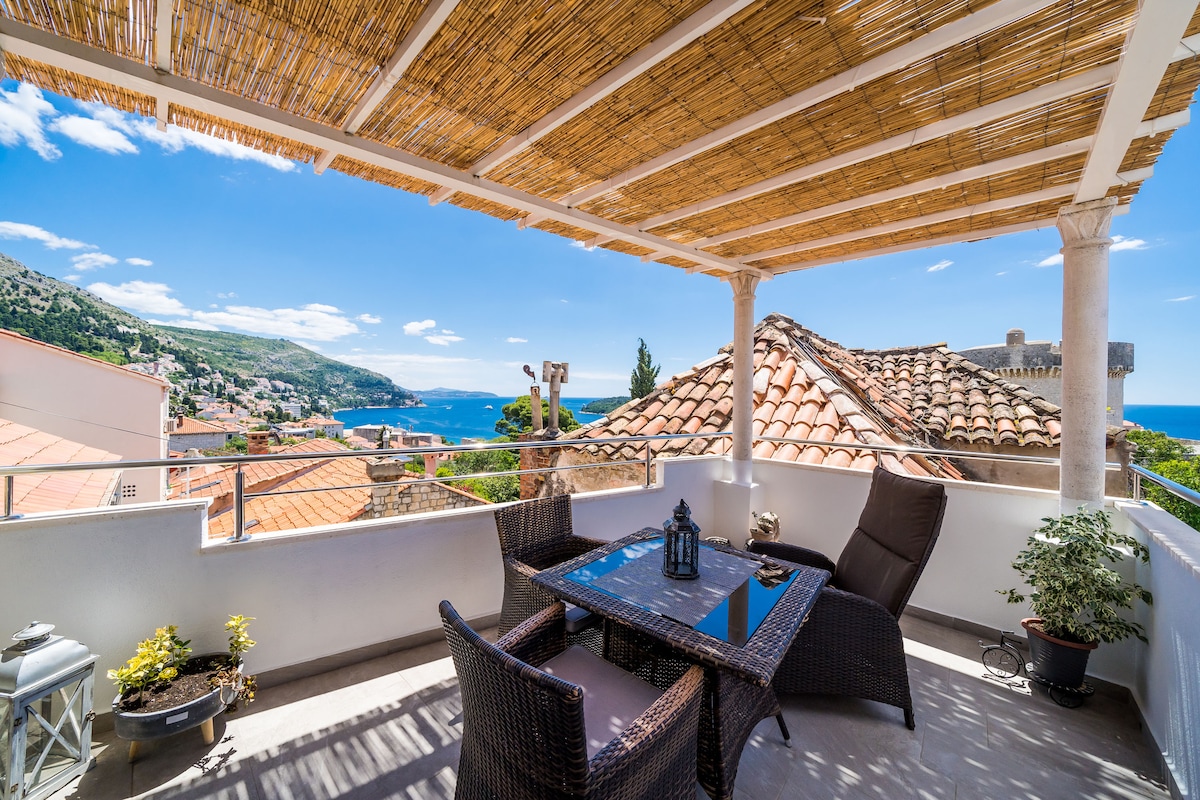 Cómodo y moderno loft en una ubicación perfecta, a solo unos pasos de las murallas de la ciudad y la puerta de Ploče, con las vistas más increíbles del casco antiguo, el mar y la isla de Lokrum. Consta de 2 dormitorios dobles, baño, aseo, cocina totalmente equipada, oficina y espacioso comedor y sala de estar con terraza con vistas a los tejados mágicos y al puerto viejo de Dubrovnik. Situado justo encima del casco antiguo en la zona de Ploče, todas las atracciones principales y playas están a poca distancia a pie.