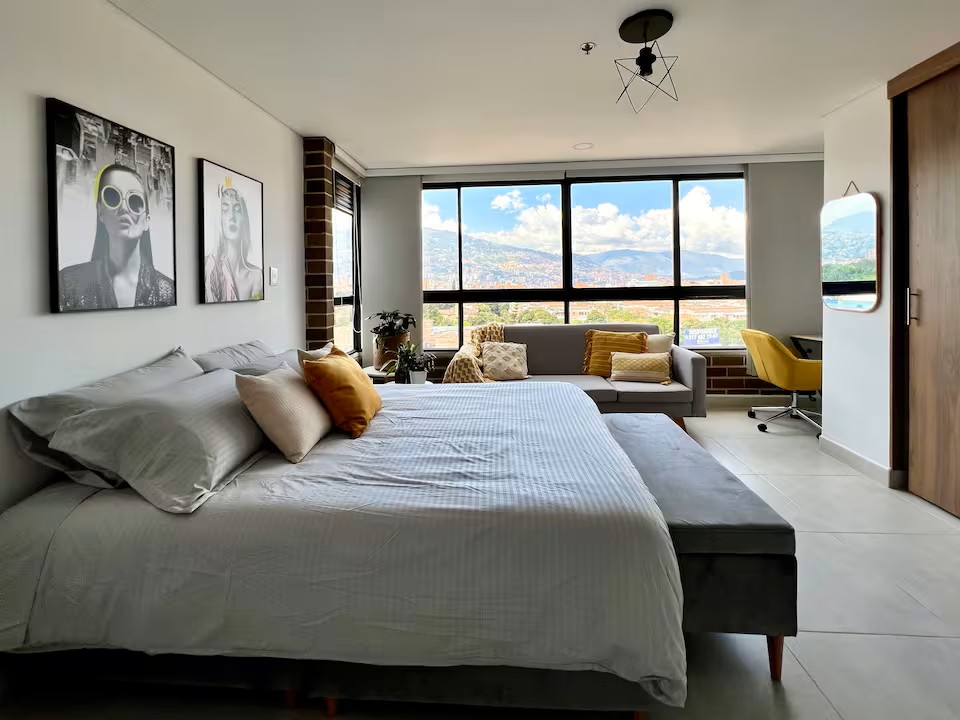 ¡Reserva una experiencia con estilo en este exclusivo estudio de planta abierta cerca del parque Lleras! - INCLUIDO EN ESTE ESPACIO - - Espacio de trabajo dedicado con WiFi de alta velocidad. - Jacuzzi privado. - Aire acondicionado - Estacionamiento gratuito en el lugar. - Televisor inteligente giratorio de 54 pulgadas. - Netflix. - Cama de calidad hotelera tamaño king. - Lavadora/secadora gratuita. - Cocina totalmente funcional. - Estación de té/café. - Cortinas opacas - Jabón, champú y acondicionador - Gimnasio - Sauna - Piscina. - Bares, restaurantes y cafetería en el lugar. - Galería de arte