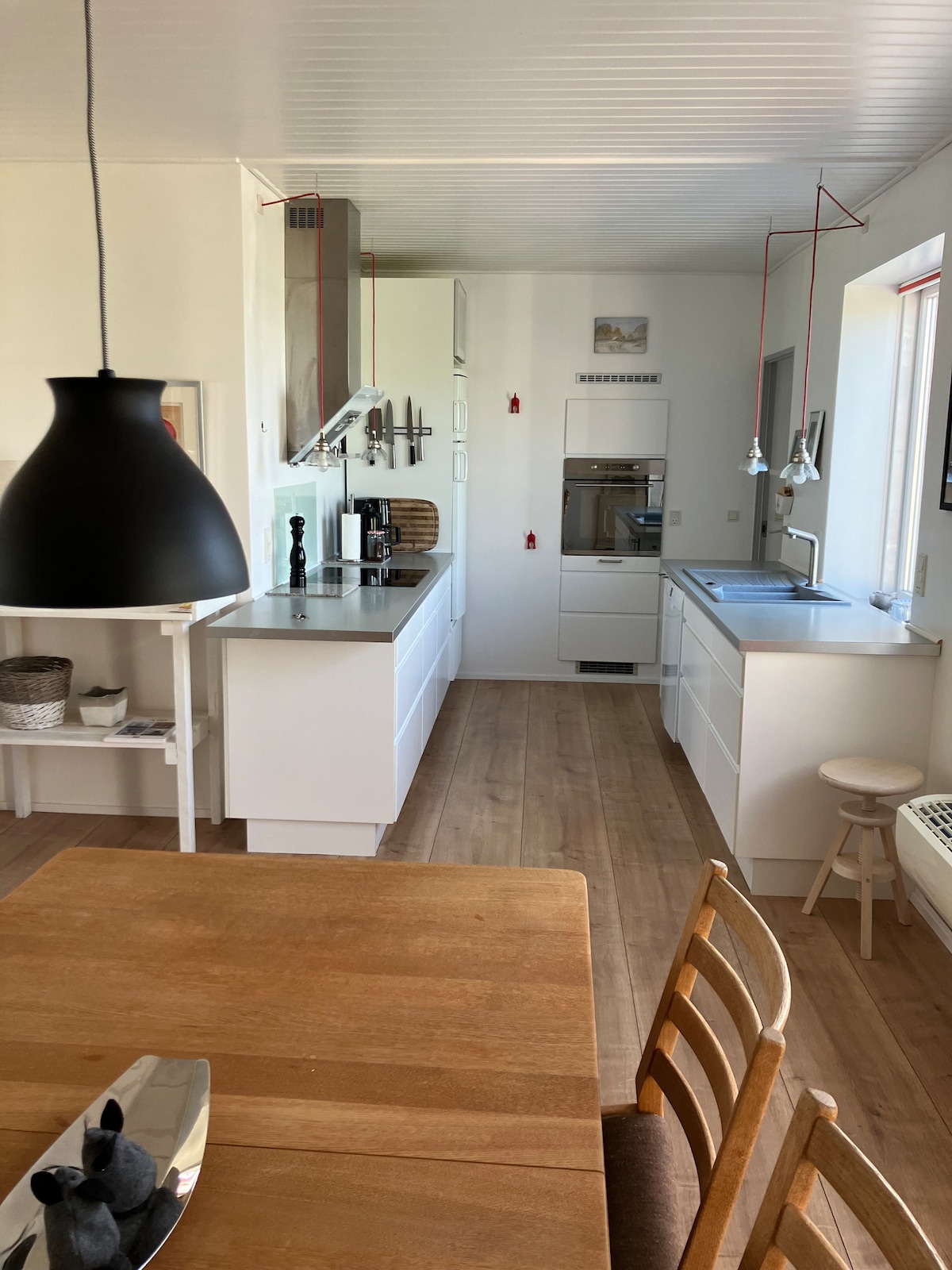 La casa de 115 m2 está situada en el centro, a 650 m. del ferry, a 850 m. de la playa, a 250 m del centro de la ciudad, (para parejas de bodas:-) a solo 100 m de la oficina de registro). A pesar de que estás en la ciudad, tienes un gran jardín y naturaleza alrededor.