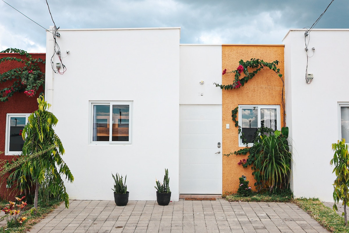 Casa privada, luminosa y totalmente equipada en Ruta de las Flores. Ideal para quienes buscan comodidad y funcionalidad para estancias prolongadas Cuenta con sala y comedor acogedores,cocina equipada para el día a día, lavadora y secadora, y una distribución práctica que facilita la rutina. Jardín privado con iluminación cálida para disfrutar tardes tranquilas Ubicada en residencial con seguridad 24/7 y servicios básicos a pocos pasos. Un espacio pensado para vivir con tranquilidad y autonomía