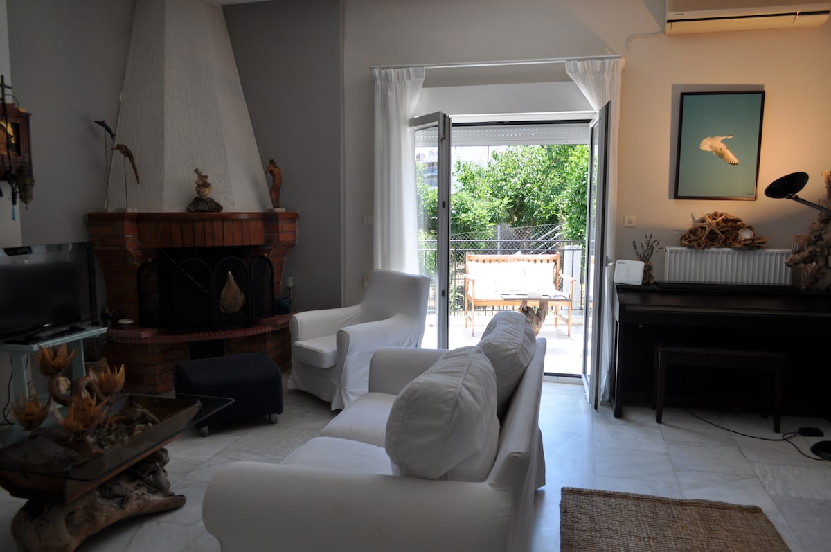 Less than ten min walking from the sandy beach, this brand new stylish studio is ready for you, on the elevated ground floor of our house. Surrounded by a flowered garden in a quiet and full of trees neighborhood between Platamonas (with its fresh fish sea side tavernas, cafes and bars) and Nei Pori (with its 5 km organised sandy beach), our house is close to everything and at the same time away from all the "noise".