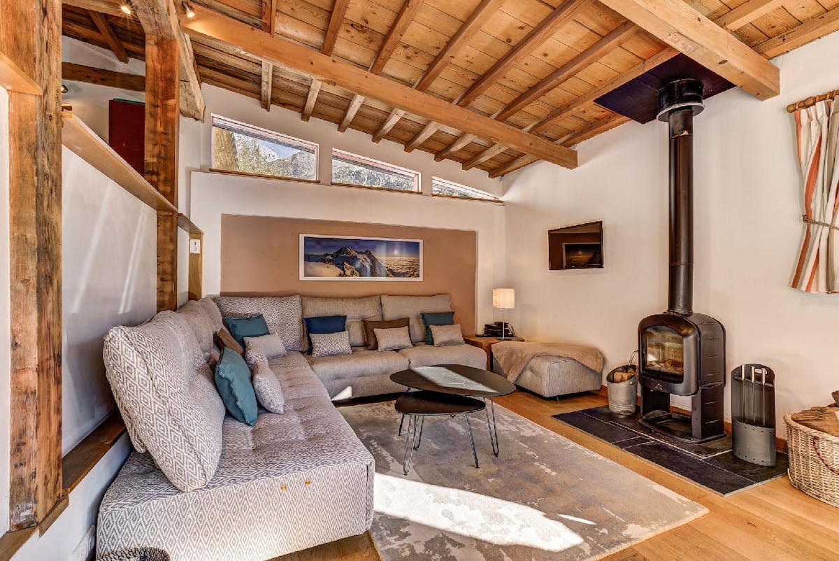Encantador chalet antiguo de madera y piedra con vistas al Mont Blanc