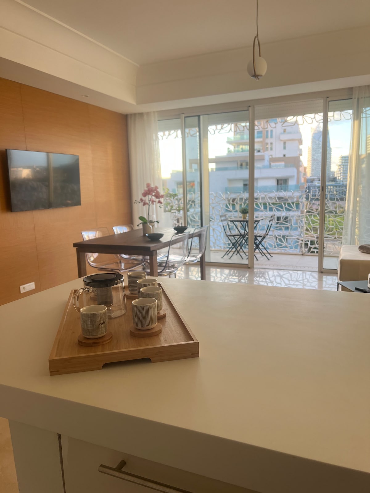 ¡Butterfly 703🦋, un remanso de paz donde la elegancia de una residencia moderna se combina con la comodidad de los hoteles de 5* en el corazón de Casablanca! Relájese en una amplia sala de estar de diseño moderno, equipada con Smart TV de 55’ con Netflix e IPTV para noches de relajación absoluta. La habitación, un verdadero nido acogedor, le promete noches tranquilas y reparadoras ☁️ ¡Desde su balcón privado, admire las espléndidas puestas de sol sobre la ciudad, haciendo que cada momento de su estadía sea inolvidable! ✨