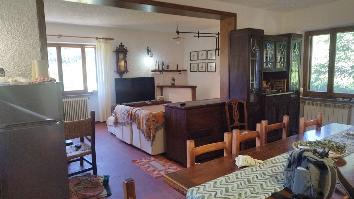 Departamento que consta de 1 dormitorio doble, cocina equipada, sala de estar grande y baño TV, barbacoa (proporcionamos la lavadora de 9:00 a. m. a 8:00 p. m. en nuestra lavandería a aquellos que lo soliciten). Recomendamos un auto, ya que vivimos en el campo, tanto para ser independientes como para visitar la magnífica Toscana. Te gustará el entorno al aire libre porque es mágico, de día y de noche Estacionamiento y wifi gratis Conveniente ubicación para visitar la Toscana y Umbría.