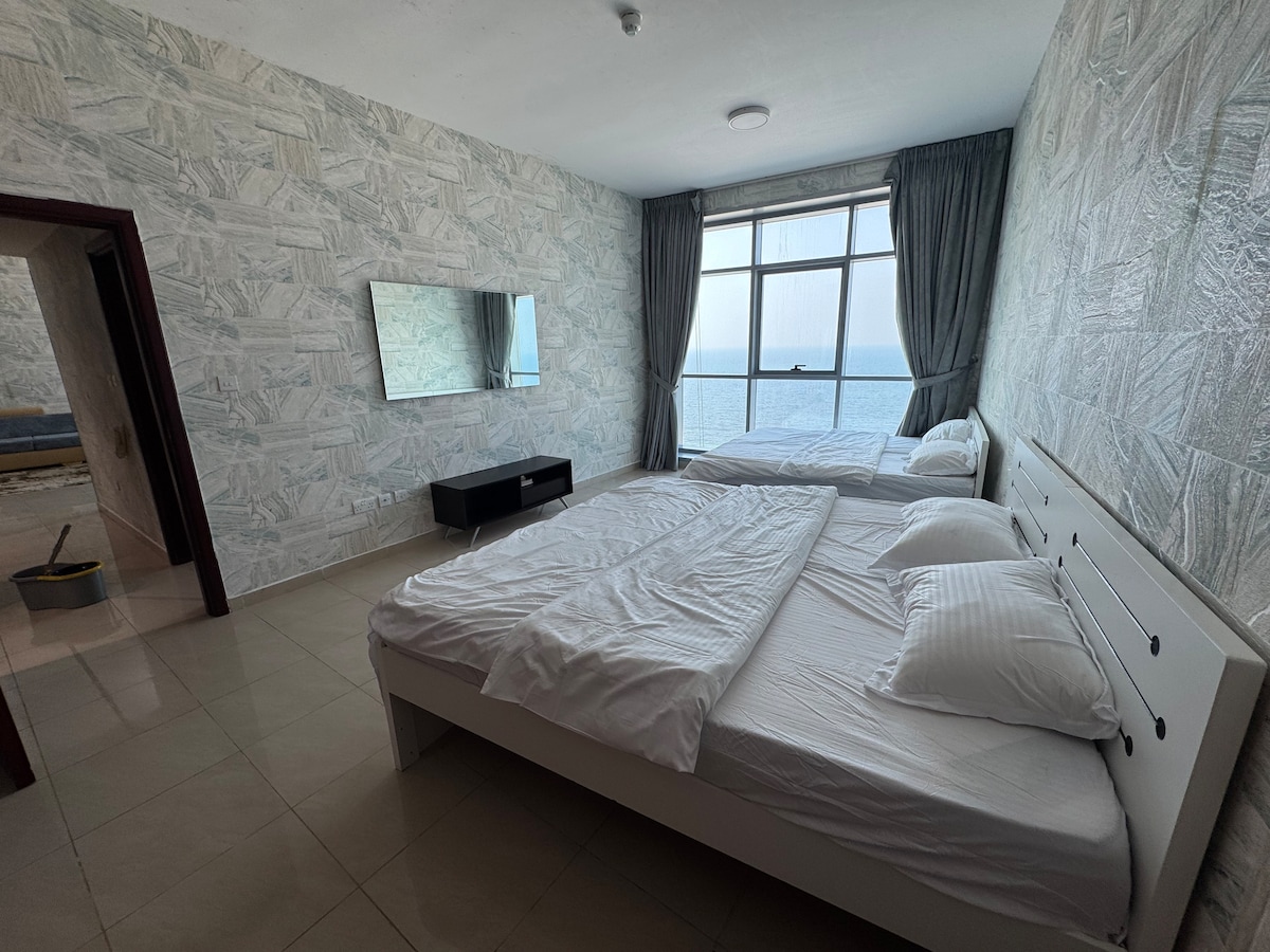 Lujoso alojamiento de 2 dormitorios en Ajman Sunrise con vista al mar y piscina
