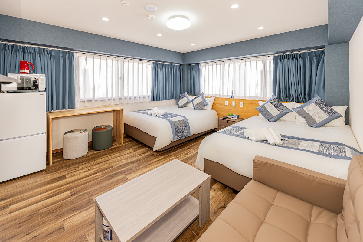 Disfruta de una espaciosa habitación japonesa moderna con camas acogedoras, área de tatami, gran mesa de comedor, cocina. La habitación tiene 2 lavabos, 2 duchas privadas y 2 inodoros, que ofrecen una gran comodidad para grupos. Situado justo enfrente de Tokyo Skytree, a solo 2 minutos de Solamachi y a poca distancia a pie de Asakusa, es la base ideal para hacer turismo. La zona cuenta con supermercados, tiendas y muchos restaurantes. Tenemos 9 habitaciones idénticas disponibles. ¡Experimenta tu mejor estancia en Tokio con nosotros!