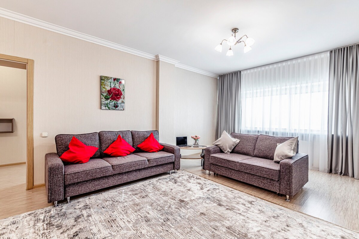 Комфортная, функциональная квартира со всеми удобствами, очень чистая. Подойдёт для 2 максимум 3х людей без детей и домашних животных. Дом расположен в центре столицы Казахстан, но при этом на территории очень тихо. Безопасный двор, камеры по периметру и внутри дома. Имеется бесплатная парковка. В квартире есть огромная лоджия для чаепития, чистая постель и полотенца, вся бытовая техника, высокоскоростной интернет, подходит для удаленной работы.