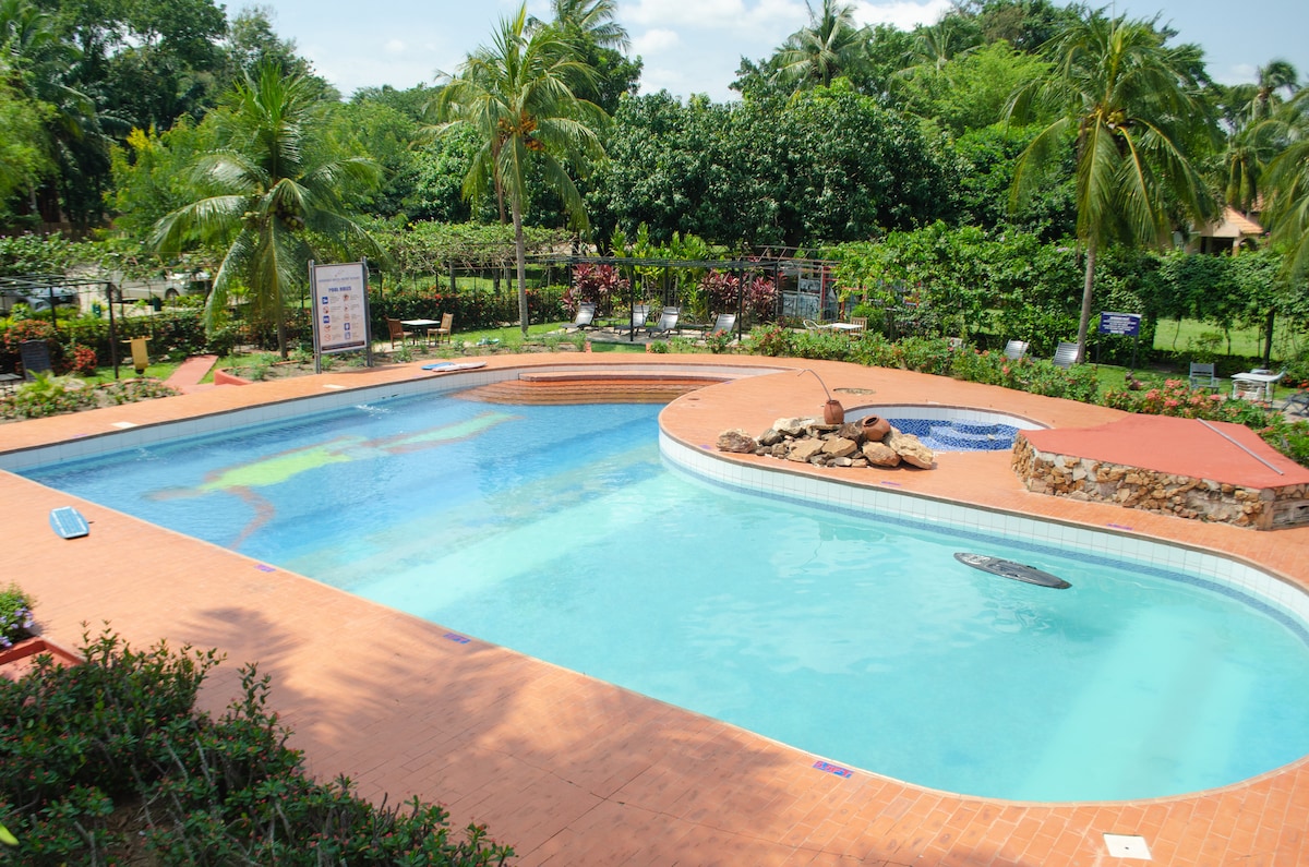 Escápate a nuestro sereno refugio junto al lago en Akosombo, perfecto para parejas, familias y grupos. Disfruta de habitaciones elegantes con cálidos acabados en madera, modernos baños en suite y acceso al balcón. Relájate junto a la piscina, cena en nuestro restaurante, disfruta de tratamientos de spa o explora el lago en barco o kayak. ¿Viajas con familiares o amigos? Alquila todo el bloque de 5 habitaciones para un máximo de 10 huéspedes (sujeto a disponibilidad). Ideal para escapadas, celebraciones o escapadas tranquilas a la naturaleza.