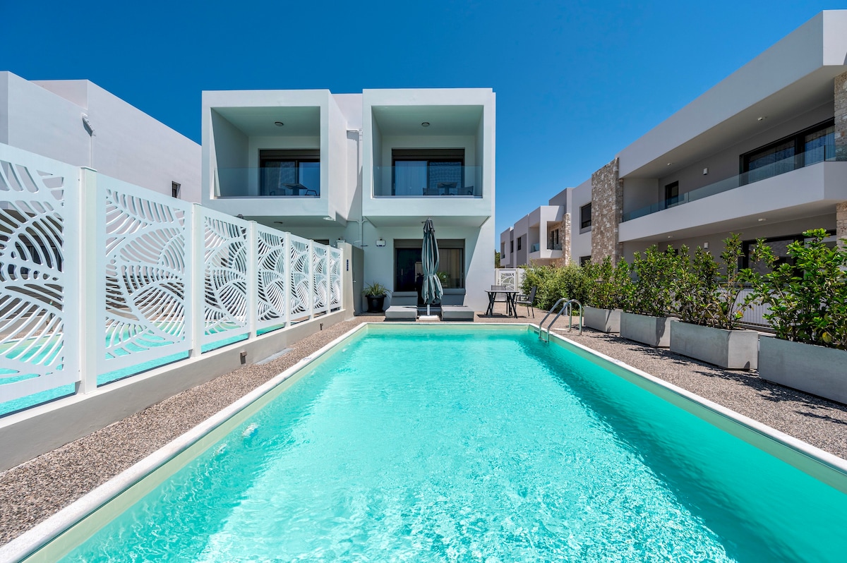 Οι βίλες διαθέτουν εξοπλισμένη κουζίνα, ψυγείο, πλυντήριο, κάποιες έχουν πλυντήριο πιάτων και τζάκι. Απολαύστε δορυφορικές τηλεοράσεις επίπεδης οθόνης, σίδερο, γραφείο και άνετο χώρο με καναπέ. Οι βίλες περιλαμβάνουν δύο ιδιωτικά μπάνια με ρόμπες, παντόφλες και δωρεάν είδη φροντίδας. Βιώστε τις μοναδικές μας πισίνες στυλ τζακούζι με εκπληκτική θέα στη θάλασσα, θερμαινόμενες όταν η θερμοκρασία είναι άνω των 25°C. Περιβαλλοντικό Τέλος €0.50 διαν/ση (01 Νοε-31 Μαρ) €2.00 διαν/ση (01 Απρ -31 Οκτ).
