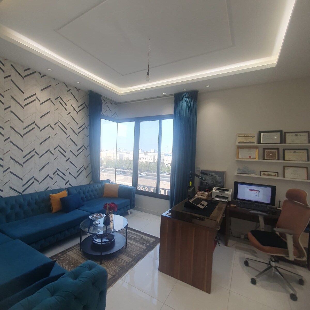 Este lujoso estudio con entrada independiente está situado en el barrio de Al-Fayhaa, que se caracteriza por su ubicación privilegiada y cerca de todas las zonas vitales (Universidad Rey Abdulaziz, Hospital Dr. Suleiman Al-Habib, estación de tren y servicios diarios las 24 horas del día. Contiene un dormitorio principal con baño privado y un salón elegante y cómodo que contiene una pantalla inteligente con acceso a Internet, Netflix, Shahid VIP y otras aplicaciones. El lugar también contiene algunos pequeños juegos de entretenimiento, así como disfrutar de la fabricación de té y café, así como una nevera, plancha, tabla de planchar, secador de pelo y aparcamiento privado.