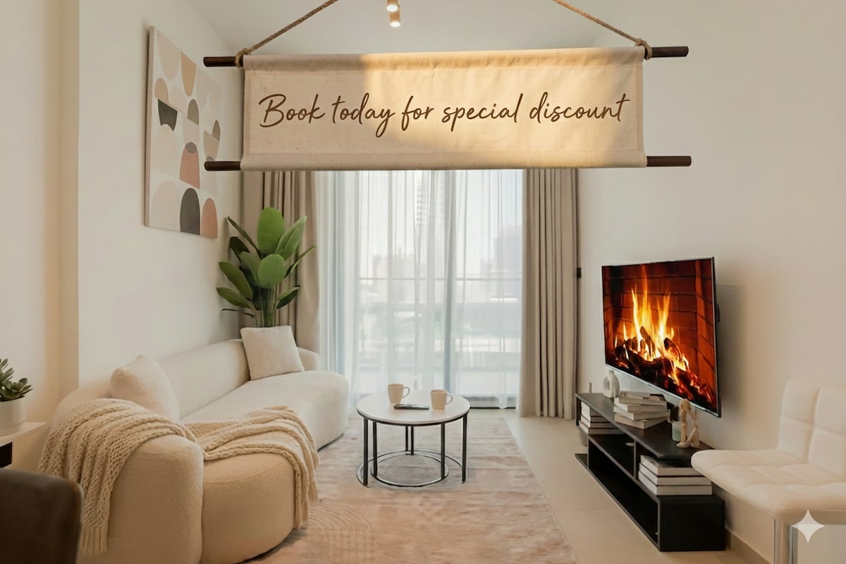 Bienvenido a tu luminoso y moderno apartamento de 1 dormitorio en el corazón de Jumeirah Village Circle, perfecto para parejas, viajeros solitarios, huéspedes de negocios e incluso familias pequeñas. Amueblada con esmero y llena de luz natural, esta casa ofrece todo lo que necesitas para disfrutar de una estancia cómoda y relajante. Ya sea que estés de visita por unos días o planeando una estadía más larga, te sentirás como en casa. Relájate en este espacio tranquilo y elegante.