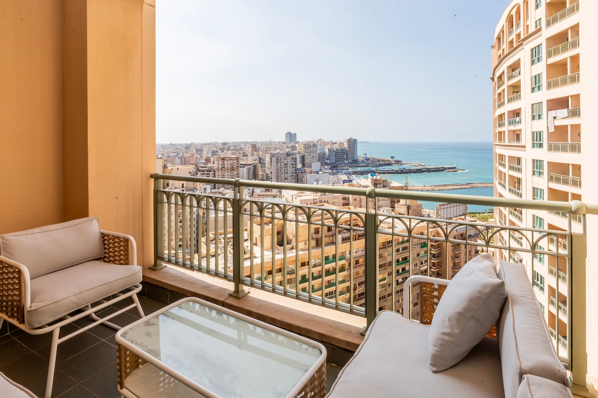 Increíble vista al mar 3BR Apt en Mandarah @Alexandria
