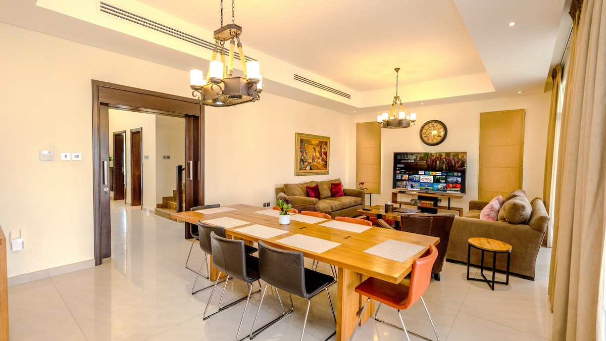 Disfruta de una estancia tranquila en una hermosa casa en una granja privada rodeada de árboles y espacios verdes con piscina privada. El lugar es ideal para familias y aquellos que buscan relajarse lejos del bullicio de la ciudad. La casa está totalmente equipada (3 cómodas habitaciones, cocina, asientos al aire libre, parrilla). Cerca de los servicios y las carreteras principales, está a poca distancia en auto de Dubai, ofrece unas vistas espectaculares de la naturaleza. Una auténtica experiencia rural con lujo y comodidad en medio del desierto