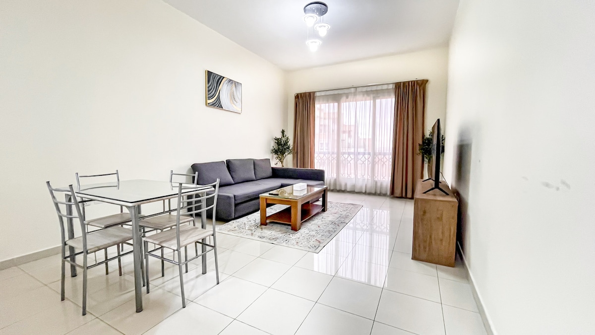 Cozy 1-Bedroom Apartment in Bab Al Bahr Enjoy a relaxing stay in this fully furnished 1-bedroom apartment in Bab Al Bahr. The apartment features a spacious living room with a pull-out sofa, a fully equipped kitchen, and a comfortable bedroom with an attached bathroom and bathtub. Step onto the private balcony and enjoy a partial sea view, perfect for relaxing with your morning coffee or evening breeze. Ideal for couples or small families looking for a peaceful and comfortable getaway.