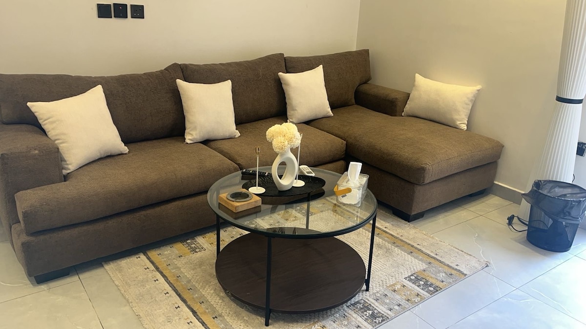 Un elegante departamento con autorregistro diseñado para dar al huésped una sensación de comodidad. Tiene un dormitorio principal además de una sala de estar con TV inteligente e Internet, así como una zona de café totalmente equipada y herramientas de cuidado personal. La habitación es muy cómoda y tranquila y el salón es elegante y moderno. El barrio es tranquilo. El sitio se encuentra entre la carretera de circunvalación oriental y la carretera Khurais. Lejos de : Hospital Dr. Sulaiman Al Habib a 10 min Hospital Prince Mohammed Bin Abdulaziz a 9 minutos Te deseamos una estancia placentera y una experiencia agradable, querido huésped. Ten en cuenta que el apartamento está en el segundo piso y no hay ascensor.