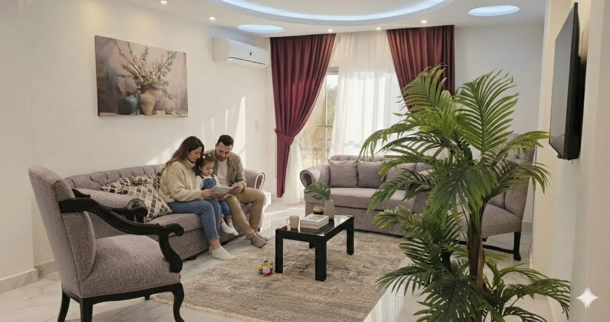🌿 Te damos la bienvenida a tu relajante refugio en Rehab City, cerca del aeropuerto y de Cairo Festival City Si estás aquí para una escapada corta, un viaje familiar o una estancia de negocios, nuestro alojamiento ofrece la combinación perfecta de comodidad, conveniencia y serenidad. "Situado en una de las comunidades cerradas más seguras y familiares de El Cairo, disfrutarás de calles tranquilas, cafés, centros comerciales y parques a pocos pasos. Es la base ideal para explorar la ciudad mientras disfrutas de un hogar tranquilo lejos del bullicio".