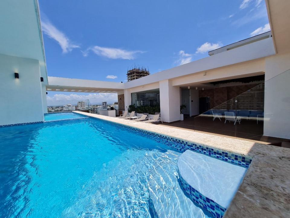 This elegant, modern apartment is in the best area of Santo Domingo, offering a prime location near top restaurants and shopping malls. It features two shared rooftop pools with jacuzzi jets, a gym, and a lounge area. The apartment includes a stylish one-bedroom design and high-speed internet