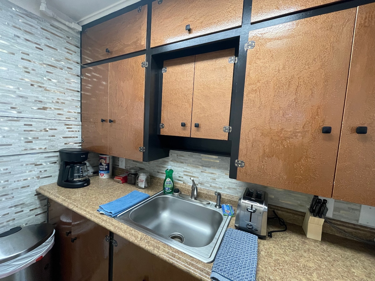 ¡Ubicación privilegiada en el centro histórico! Este encantador y acogedor dormitorio de 1 dormitorio se encuentra a solo 1 cuadra de Resurrection Bay, el Sea Life Center y tiendas y restaurantes del centro. Somos uno de los edificios históricos de Sewards y formamos parte del recorrido histórico a pie. Este alquiler ha sido renovado para proporcionar servicios modernos, pero mantuvimos parte del encanto histórico. Pequeño pero pintoresco con cama tamaño queen, baño privado, sala de estar, cocina americana y zona exterior. Traslado gratuito y sendero para caminar a 1 cuadra de distancia.