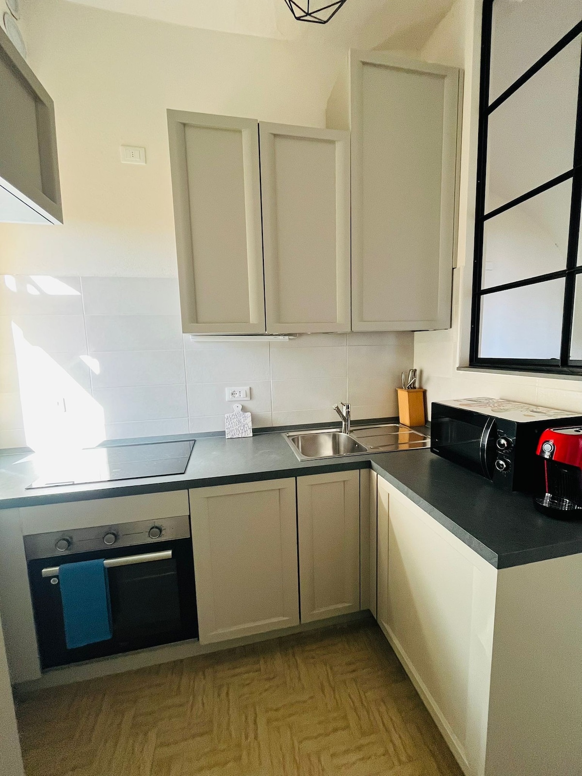 Donde el mar besa la orilla y las montañas se alzan detrás, hay un lugar lleno de encanto, sol y belleza eterna. Esto es Alassio, joya ligur donde casas de colores pastel bordean callejuelas, el aire huele a brisa marina y focaccia, y cada atardecer parece un cuadro. El piso es luminoso, fresco y sencillo, pensado para que te sientas cómodo, relajado y en armonía con su belleza.