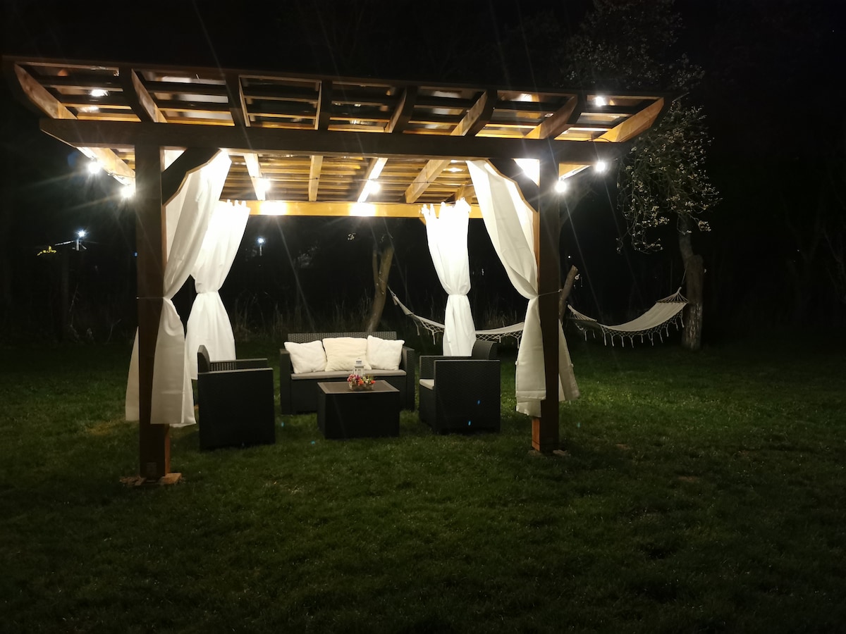 Un oasis de tranquilidad e inspiración: Retiro con 7 tiendas temáticas (Amor, Vida, Magia, Sueño, Escucha, Luna), cada una con terraza, muebles de madera y aire acondicionado. Baños y salón independiente, cocina totalmente equipada, parrilla, bar en la terraza. Wifi y estacionamiento gratuito. Fácil acceso desde la A1, salida Sebeș. Cerca del río Rojo, en la ruta Via Transilvanica. Acceso gratuito a la pirámide terapéutica. ¡Se admiten mascotas!