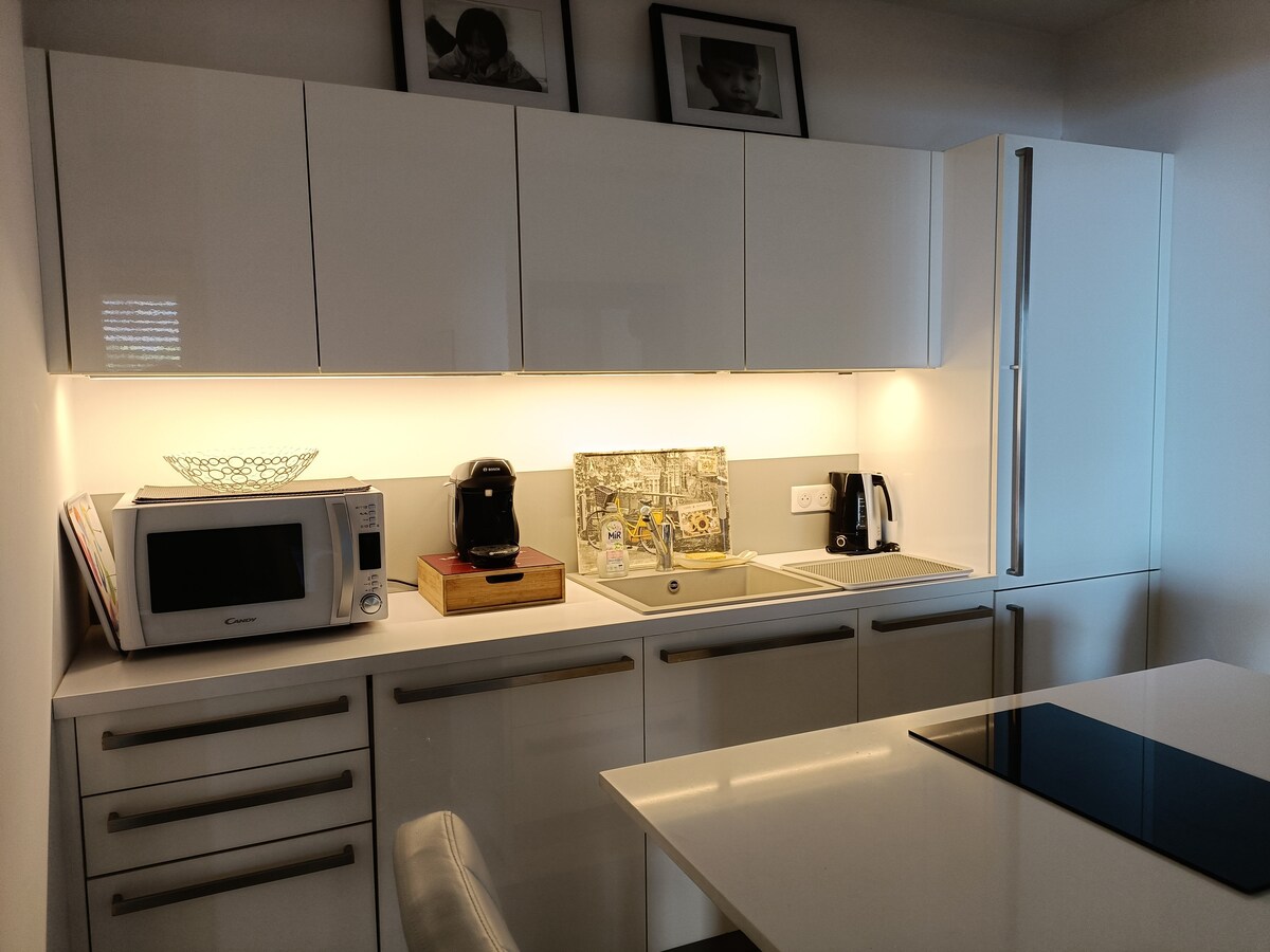 Situado en el corazón del centro de la ciudad por encima de la plaza Charles de Gaulle, encantador F2 de 45 m2 que consta de una gran habitación con cama de 160, una sala de estar con sofá cama, una terraza de 25 m2 con vistas a estas dos habitaciones, una cocina abierta y un hermoso cuarto de baño con ducha espaciosa. Segundo piso con ascensor y estacionamiento gratuito seguro.