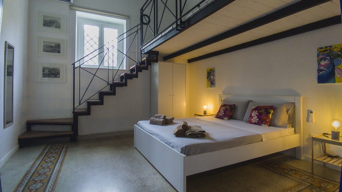Mi alojamiento está cerca de la zona monumental de Palermo y se encuentra inmerso en el ambiente de un barrio muy típico. Paseando se puede llegar a la zona peatonal del centro histórico (Porta Nuova), a los principales monumentos (Catedral, Norman Palace, Catacumbas de los Capuchinos, Quattro Canti, etc), a la Universidad, a los mercados históricos, restaurantes y pubs. Un alto espacio abierto con altillo, debajo del cual hay una cama de matrimonio y de arriba hay una cama de una plaza y media.