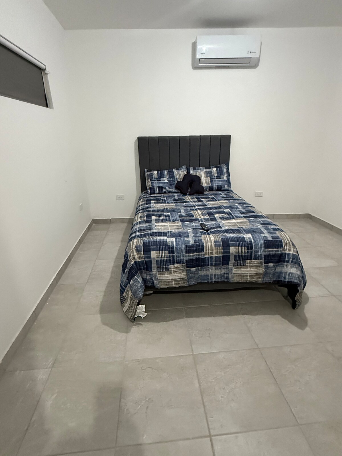 Habitación Moderna y Acogedora Disfruta de una estancia cómoda en esta habitación moderna y luminosa. Con una cama queen-size, aire acondicionado, TV, y un escritorio, es perfecta para descansar o trabajar. La decoración incluye un cuadro colorido que añade personalidad al espacio. Además, cuenta con un armario amplio con caja de seguridad y mini refrigerador. Ubicada en un barrio seguro, cerca de restaurantes y transporte. Todo lo que necesitas para una experiencia relajante y agradable.