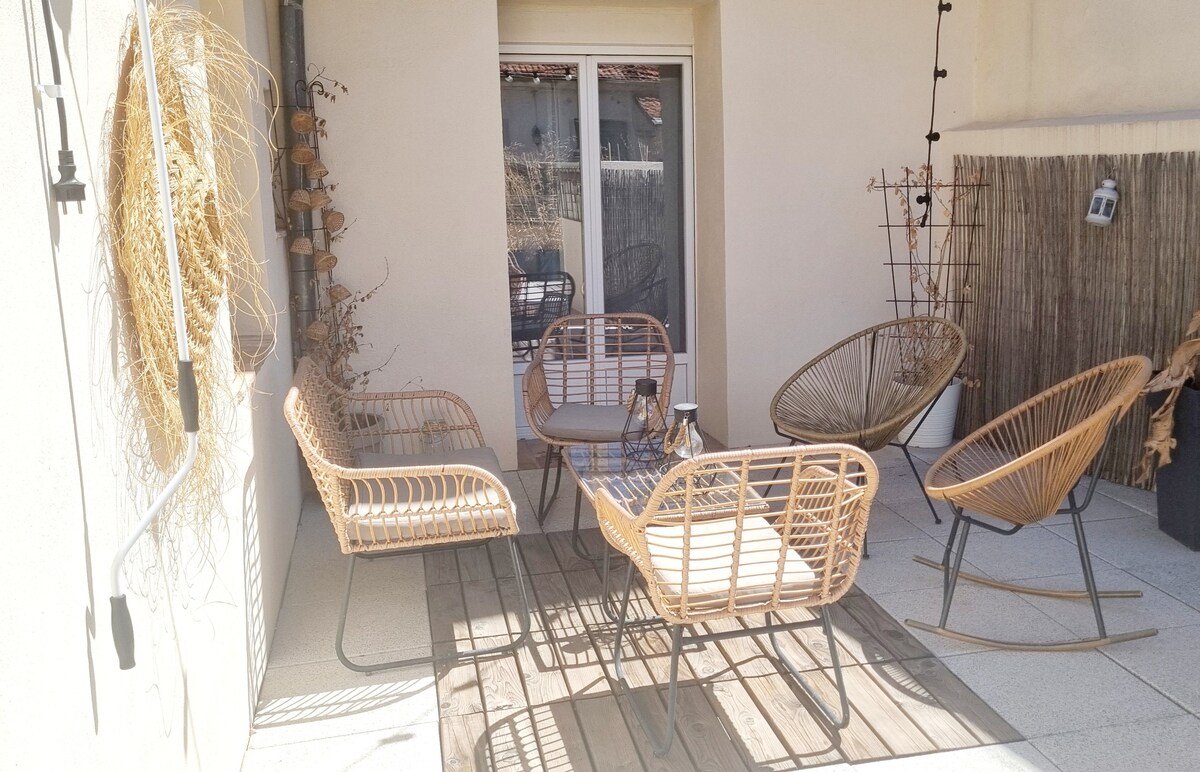 Appartement Au troisième étage sans ascenseur , d‘ une surface de 55 m2 , comprenant une pièce à vivre avec table, 4 chaises, canapé clic clac convertible en lit 140 , une table basse, un meuble TV et une TV . Une cuisine équipée, micro onde, four, gaziniere, cafetière, frigo. Un wc séparé Une salle d.eau séparée Une chambre avec lit 140, coin bureau et dressing Drap et linge de toilette fournis Torchon, produit ménagés fournis l'appartement est climatisé un garage personnel