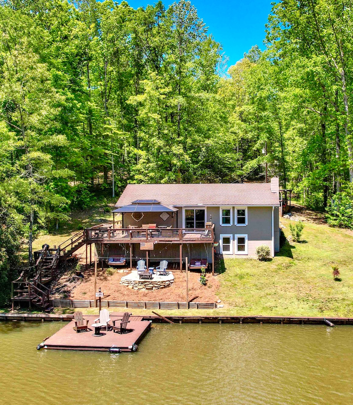 Family friendly private oasis, nestled in a quiet cove on the south end of Wedowee. Perfectly situated on a flat peninsula with grass to the water's edge. Enjoy breathtaking views from every room, while easily keeping an eye on kids. Multiple outdoor areas, perfect for lounging, dining, and stargazing. 5 bedrooms with expansive sleeping accommodation.