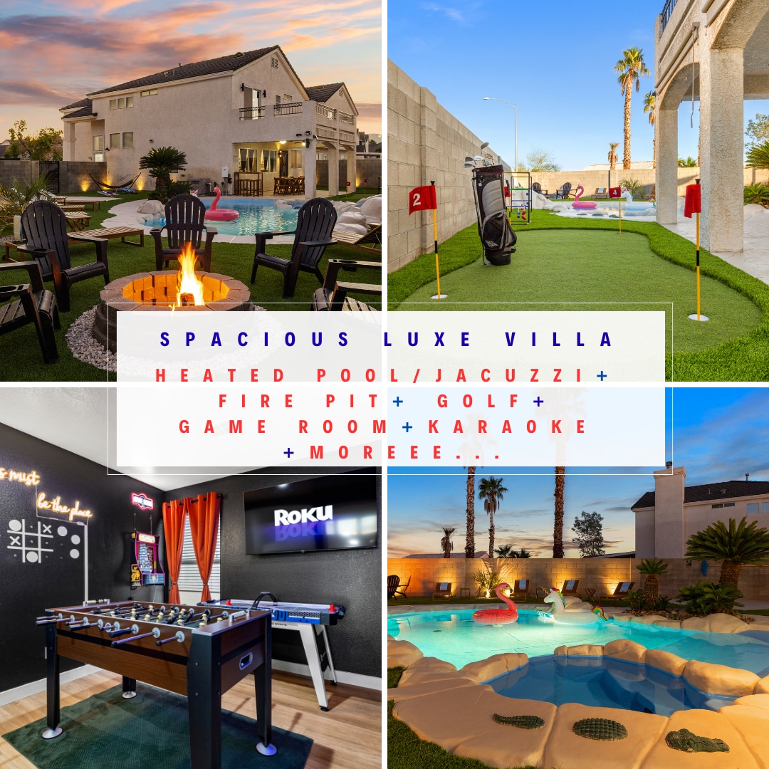 LUXE Villa! Heated Pool/Spa+Game Room+Karaoke+Golf