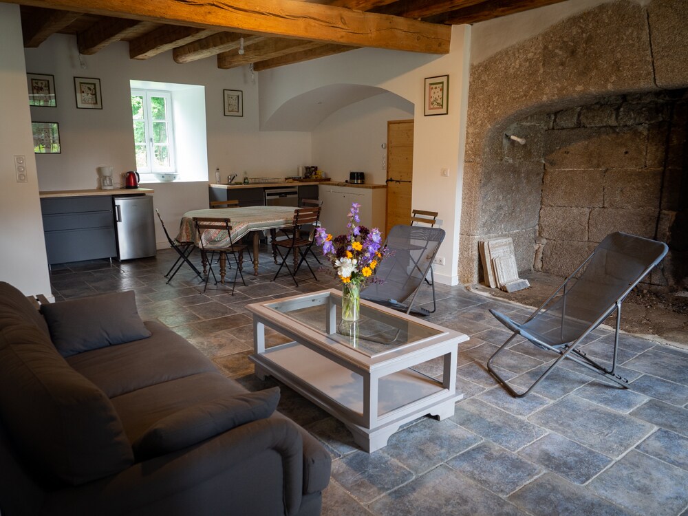 ¿Necesita ponerse verde? Venga a relajarse lejos del ruido, las luces y la contaminación en este albergue de 1812 donde le esperan vegetación, piedras viejas, madera vieja, pero con todas las comodidades modernas. Wifi cortado permanentemente (excepto en caso de emergencia) para menos molestias frecuentes, no hay televisión, pero hay proyectores de vídeo para los cinéfilos. Gran cocina, salón y baño compartido. Se puede alquilar por habitación (3 habitaciones y 3 precios diferentes) o por casa rural independiente (me alojo en otro edificio).