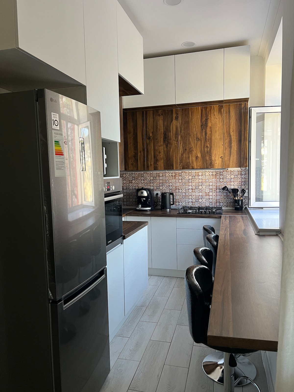 Este acogedor apartamento cuenta con una amplia sala de estar con un cómodo sofá cama y una gran cama con colchón ortopédico en el dormitorio. La cocina está totalmente equipada con lavavajillas, lavadora y todos los utensilios necesarios. Cada habitación tiene aire acondicionado para tu comodidad y el apartamento tiene una vista increíble de la ciudad. El apartamento también incluye un balcón, perfecto para relajarse. Si te gustó nuestro apartamento o aún no has decidido si reservarlo, añádelo a tu lista de favoritos para facilitar el acceso.