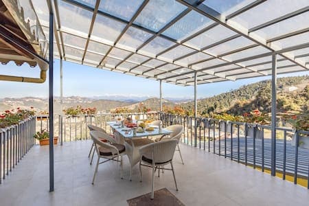 Escondite del Himalaya: ¡Esperan vistas impresionantes! Ubicado a 7500 pies en Mukteshwar, este acogedor refugio de 2 dormitorios con hermoso balcón ofrece impresionantes vistas del Himalaya de 180°, incluidos los picos nevados como Nanda Devi. Perfecto para familias o amigos, disfruta de un tiempo de calidad y tienes la opción de cocinar o pedir en un restaurante de cocina múltiple. Pasea por exuberantes huertos o relájate con un libro mientras las montañas hacen su magia. Hermoso viaje por carretera/tren desde Delhi, es tu escapada serena de la vida de la ciudad.