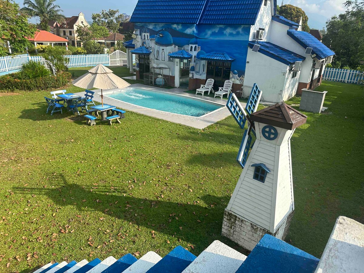 The Dan Garden -瑭苑 Un bungalow recién amueblado de más de 6000 pies cuadrados en el centro de Malaca. A 15-20 minutos de aquí a la galería Jonker. En nuestra ubicación, los huéspedes no recibirán contaminación sonora de los coches ni atascos de tráfico durante la temporada alta. Inodoro premium y TV inteligente en cada habitación. Los huéspedes pueden relajarse en nuestro jardín y paisajismo y disfrutar de la música que proviene de los altavoces del techo en la sala de estar. Te garantizamos que te encantará este lugar por el ambiente extravagante, las camas cómodas y, por supuesto, el espacio al aire libre. Habitación 1 y habitación 4 - 2 camas individuales grandes. - Cama tamaño queen x 1. - Baño (champú y toalla incluidos). - Televisión inteligente (conexión fuerte). -secador de pelo - Percha - Aire acondicionado de 2,0 hp Habitación 2 y habitación 3 - 1 cama tamaño king. - Baño (champú y toalla incluidos). - Televisión inteligente (conexión fuerte) -secador de pelo - Percha. - Aire acondicionado de 1,5 hp Sala de televisión - Televisor inteligente de 55 pulgadas (conexión fuerte) - Altavoces de calidad - Sofás cama Cocina - platos, tazas, cuchara y tenedor (para uso de 12 huéspedes) - Utensilios de cocina - Máquina de agua Coway - Barra - Nevera - Lavadora Salón - Mesa de comedor - Aire acondicionado con cassettes de 2,5 y 3,0 hp - mesa de majong Otros: Porche para coches (para 3 coches) - 2 patios con vistas al jardín 2 módems Prohibición - Prohibido fumar en interiores. - No se permiten mascotas. - No se permiten actividades fuera después de las 23:00 horas.