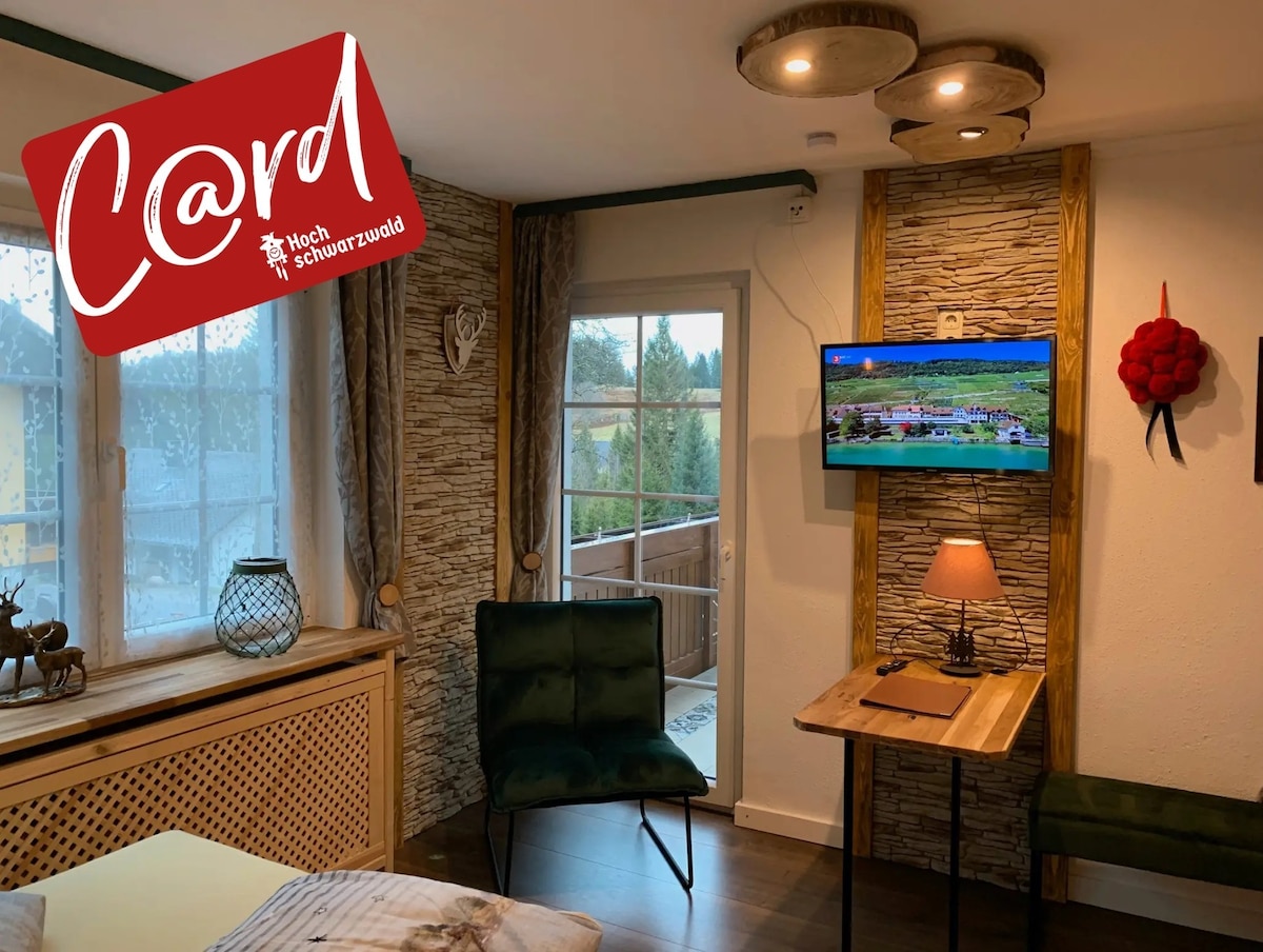 La habitación doble con ducha y WC está en Schluchsee-Blasiwald, junto al bosque y destaca por sus vistas a la montaña. El alojamiento de 16 m² dispone de 1 dormitorio y 1 baño y tiene capacidad para 2 personas. También contaréis con Wi-Fi y TV. En la casa hay sauna, disponible para uso privado bajo petición y con coste adicional.