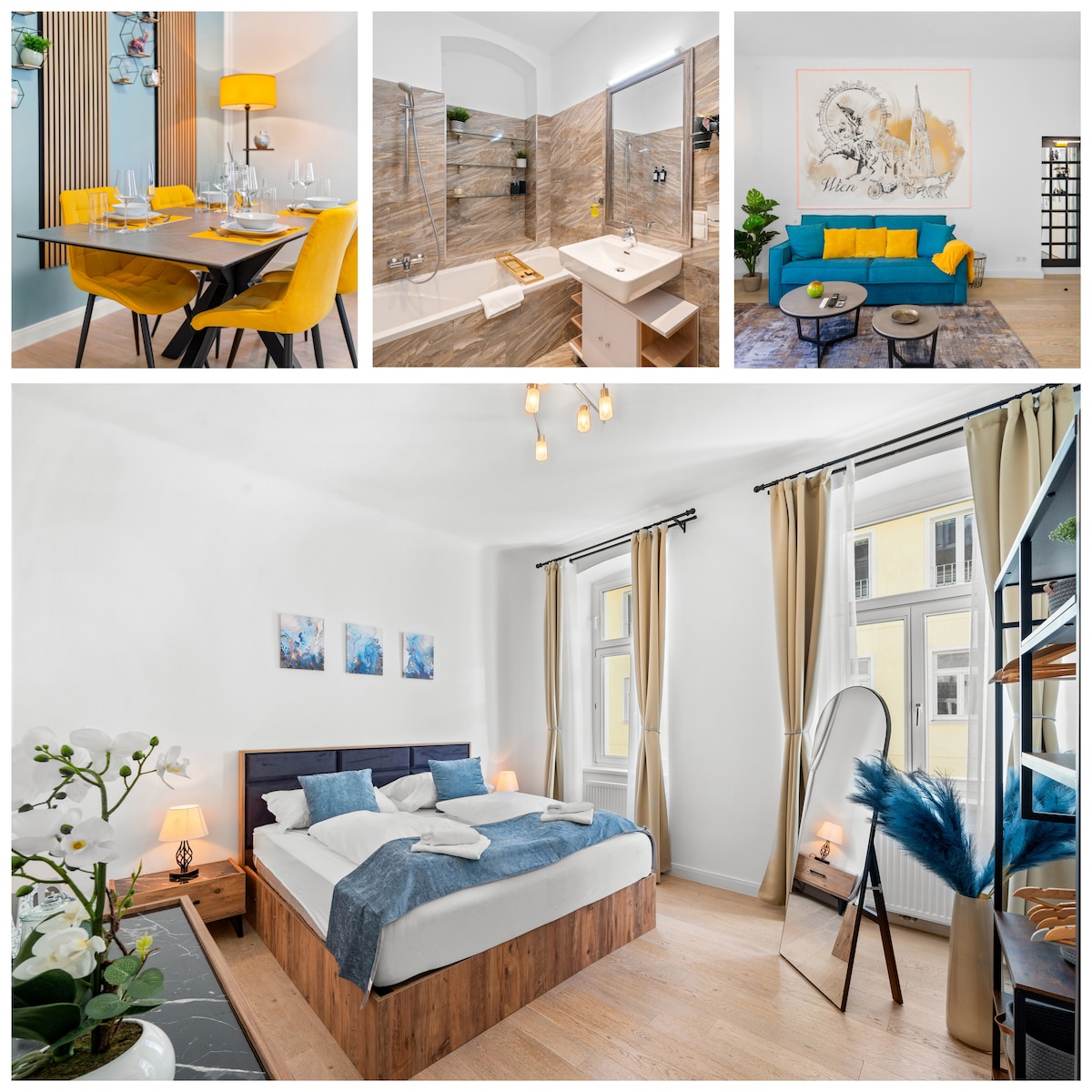Este apartamento se encuentra en una de las mejores y más modernas zonas de Viena (Servitenviertel) y representa un típico apartamento vienés en un Palais (por ejemplo, techos espaciosos, altos y estucados, interiores elegantes y modernos, lámparas de araña de cristal originales, balcón, piano). Todas las habitaciones están decoradas con mucho estilo y detalle, ya que los propietarios del apartamento son diseñadores de interiores. El apartamento también ha aparecido en Andrew Martins Design Review, los Óscar del diseño de interiores.